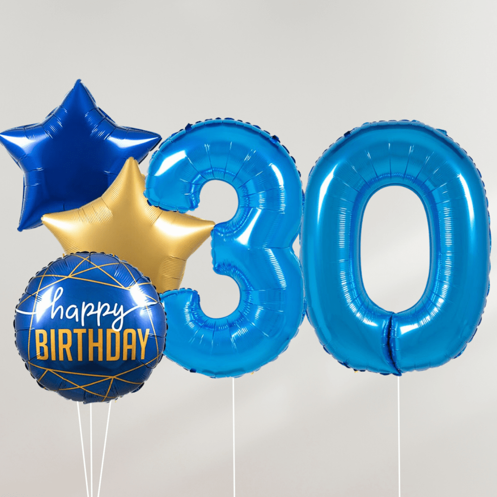 30 År Ballongbukett - Blue Stars