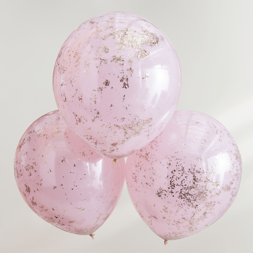 Rosa og Rosegull Konfetti Dobbelballong Bukett